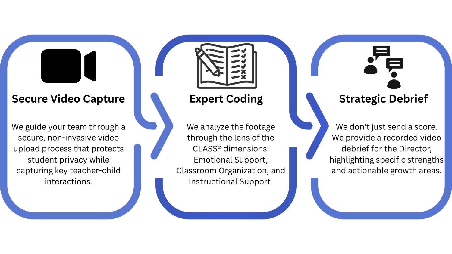 Certified CLASS® Observations meet modern efficiency. We provide high-level, virtual oversight to stabilize your instructional quality and ensure your center meets the highest standards of excellence—remotely.